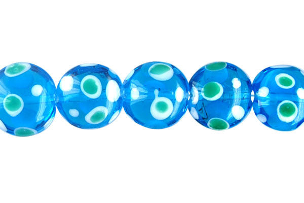 Art Foil Glass Button (Polka-Dotted Sky Blue)