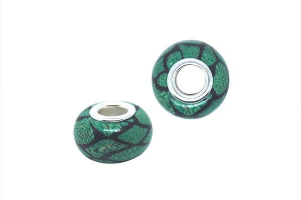 Fimo Rondelle w/Silver-Plated Core (Green Honeycomb), 10x15mm