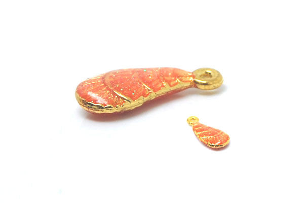 Gold-Plated Charm Shell w/Orange Enamel, 6.5x15mm