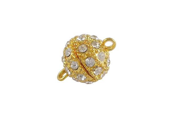 Metal Alloy Magnetic Clasp Ball with Rhinestone (Gold), 12mm