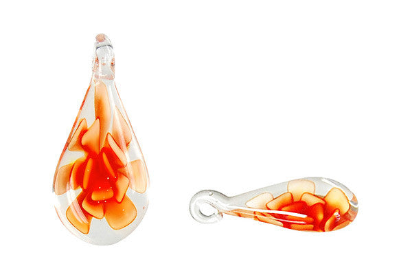 Murano Foil Glass Briolette Flower Earrings (Orange)