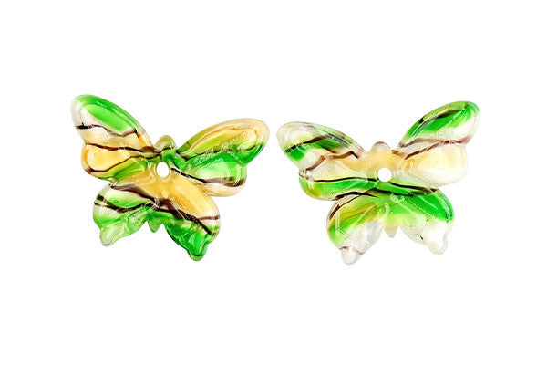 Murano Foil Glass Butterfly Earrings (YHA22 Green and Yellow )