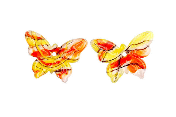 Murano Foil Glass Butterfly Earrings (YHA26 Yellow and Orange)