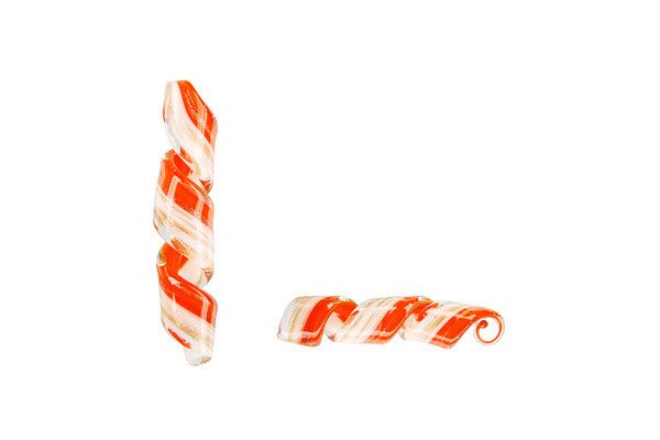 Murano Foil Glass Twist Earrings (YHA09 Orange and White)