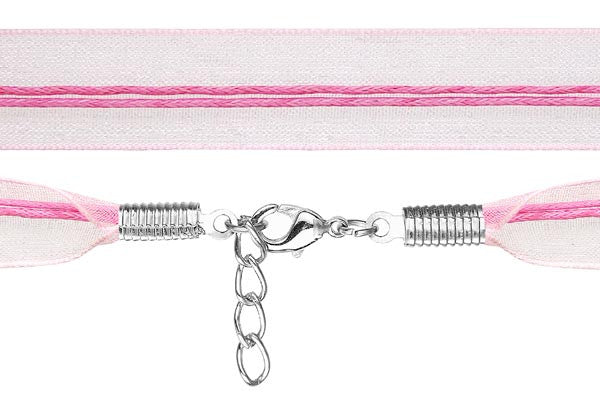 Organza Ribbon Necklace with 2 Waxed Cord, Pink