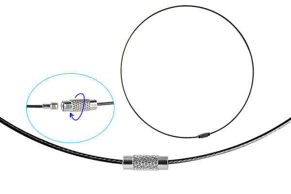 Silk-Coated Steel Necklace, Black w/Silver-Plated Endcaps, Screw Clasp