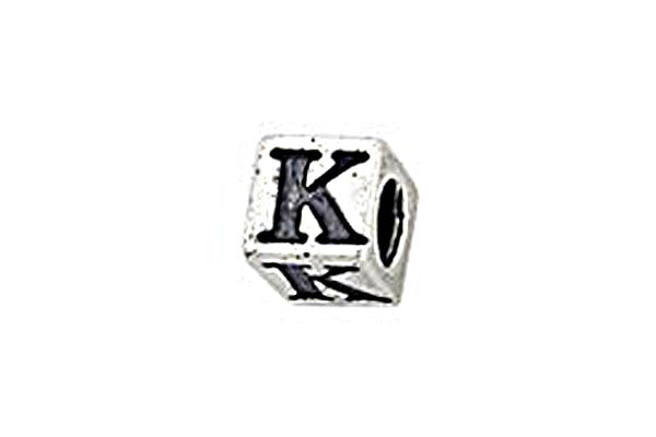 Sterling Silver Alphabet Letter K Cube, 5.1mm