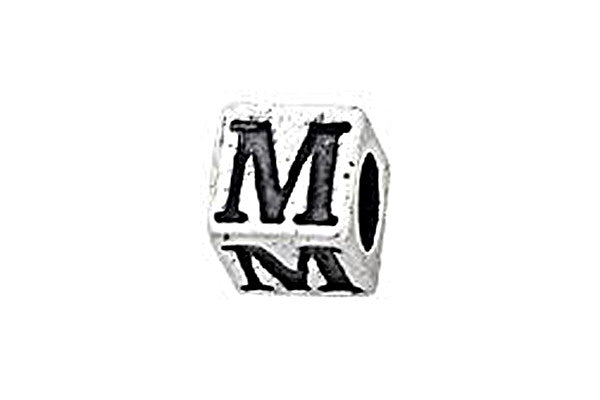 Sterling Silver Alphabet Letter M Cube, 5.1mm