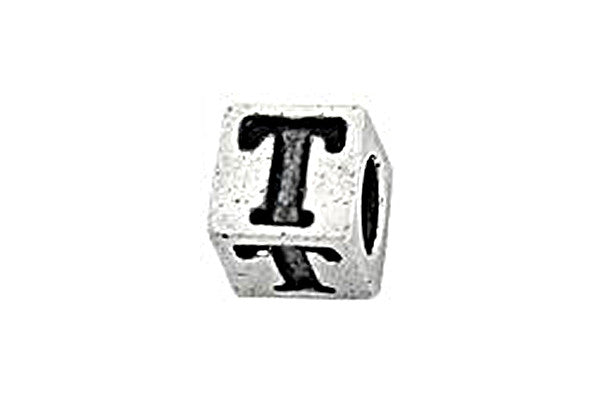 Sterling Silver Alphabet Letter T Cube, 5.1mm