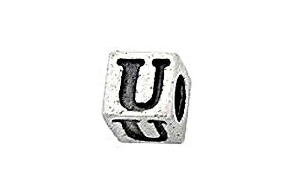 Sterling Silver Alphabet Letter U Cube, 5.1mm