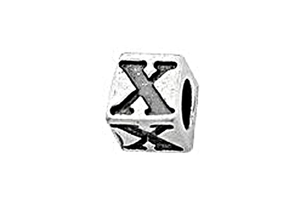 Sterling Silver Alphabet Letter X Cube, 5.1mm
