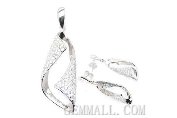 Sterling Silver CZ Micro-Paved Pendant with Earring Style (RHPE0009)