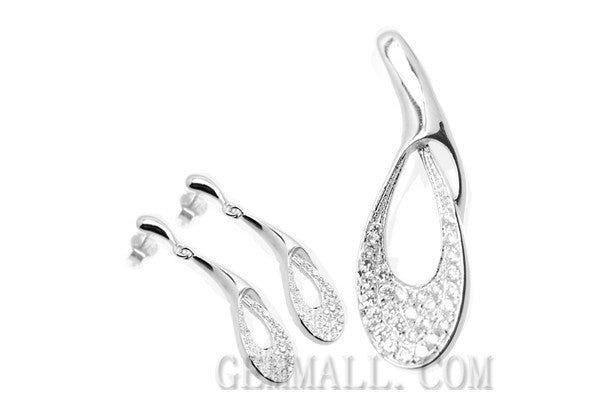 Sterling Silver CZ Micro-Paved Pendant with Earring Style (RHPE0011)