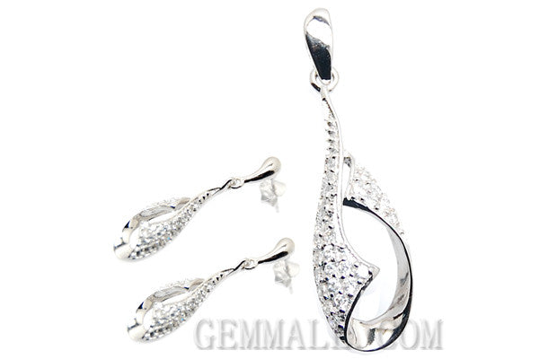 Sterling Silver CZ Paved Pendant with Earring Style (RHPE0014)