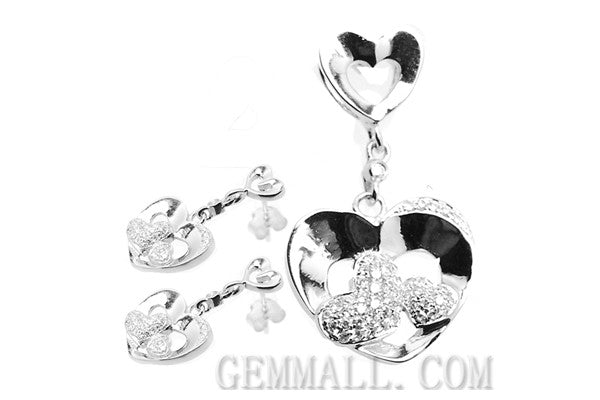 Sterling Silver CZ Micro-Paved Pendant with Earring Style (RHPE0015)