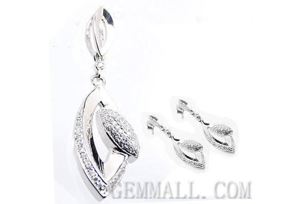 Sterling Silver CZ Micro-Paved Pendant with Earring Style (RHPE0021)
