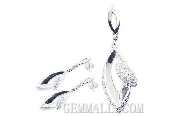 Sterling Silver CZ Paved Pendant with Earring Style (RHPE0022)