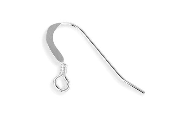 Sterling Silver Flat Ear Wire w/Coil, 20.0mm
