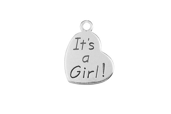 Sterling Silver It's a Girl Charm, 20.0x15.0mm