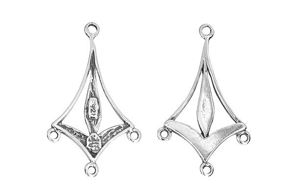 Sterling Silver Kite Connector with 3 loops, 28.0x17.0mm
