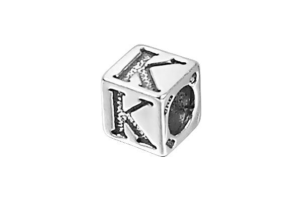 Sterling Silver New Alphabet Letter K Cube, 6mm